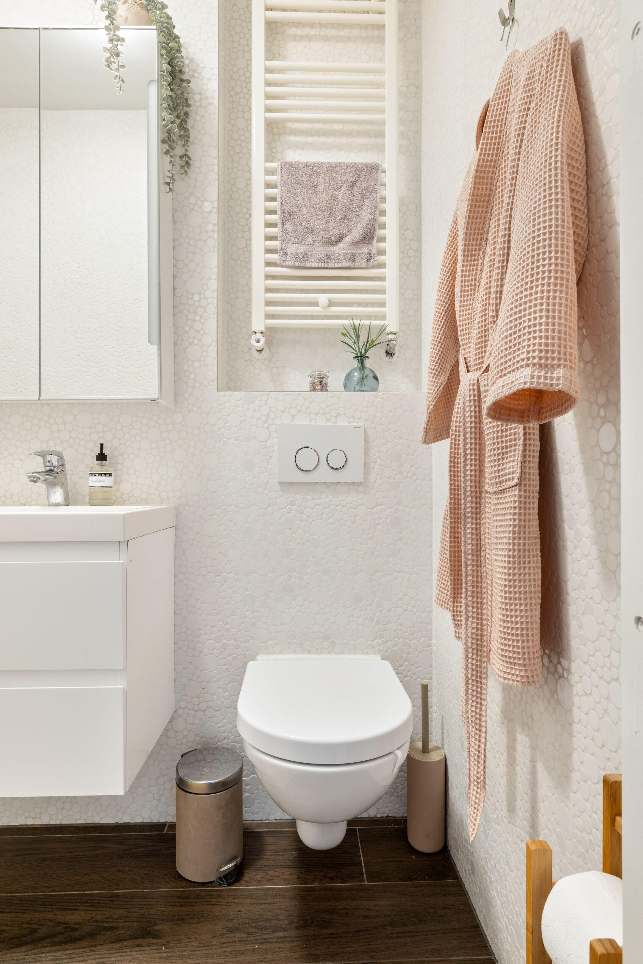 - Inloopdouche, toilet, wastafel, en wastafelmeubel