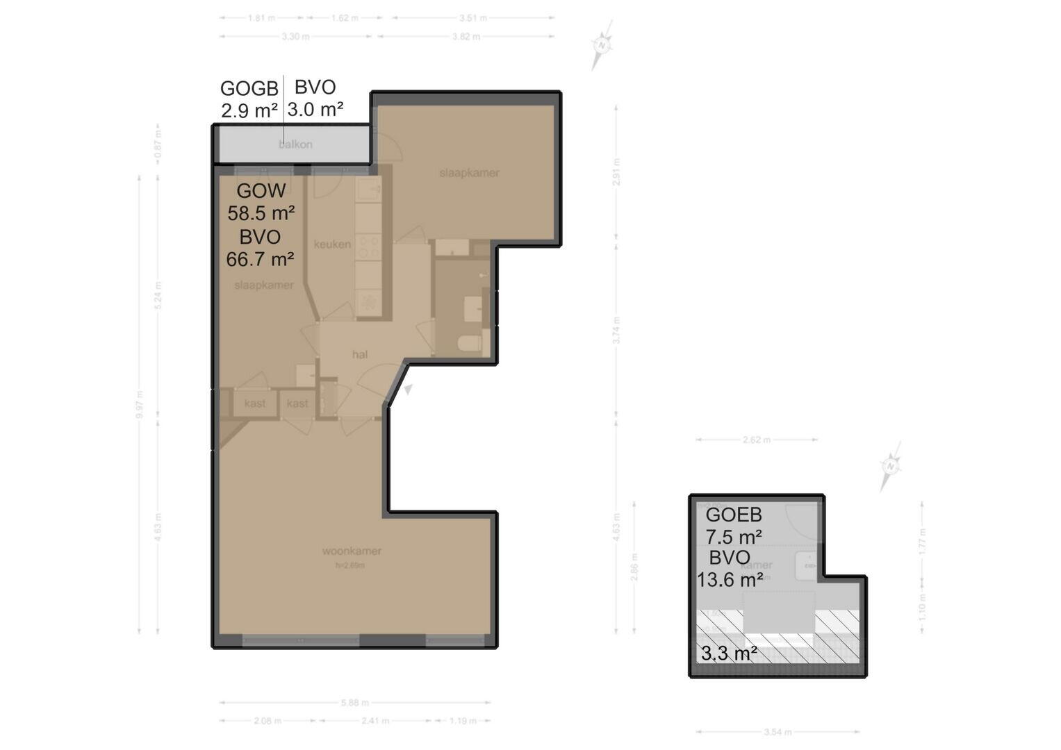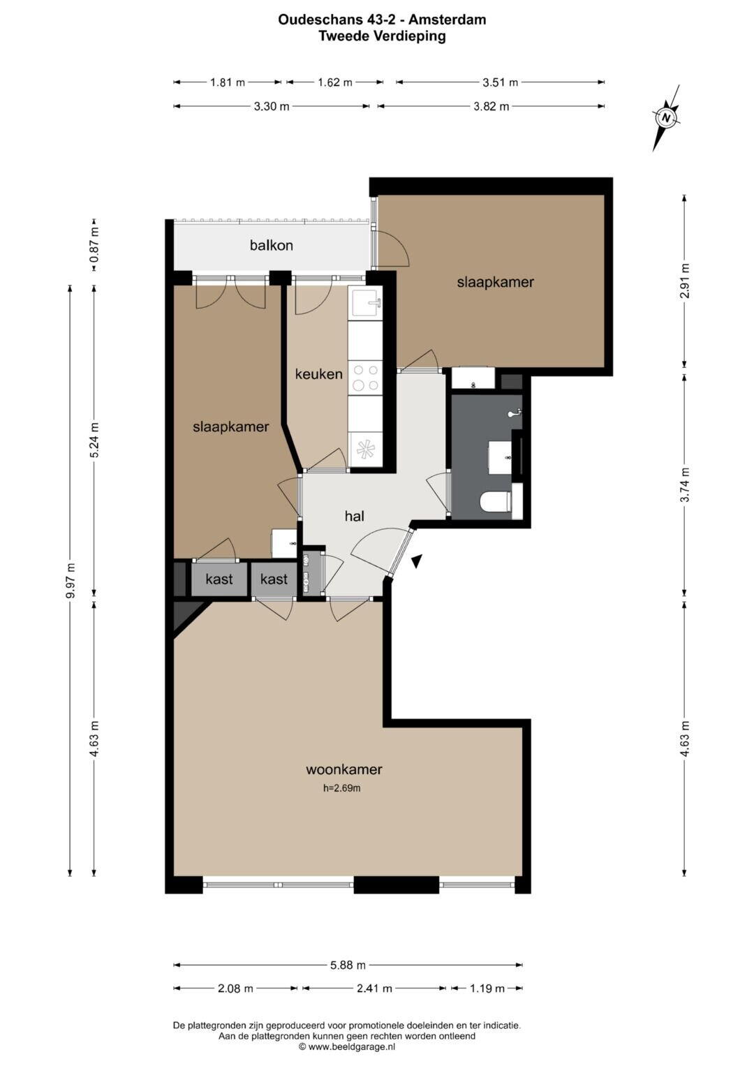 • Gemeten volgens NEN-2580 richtlijn: 59m2